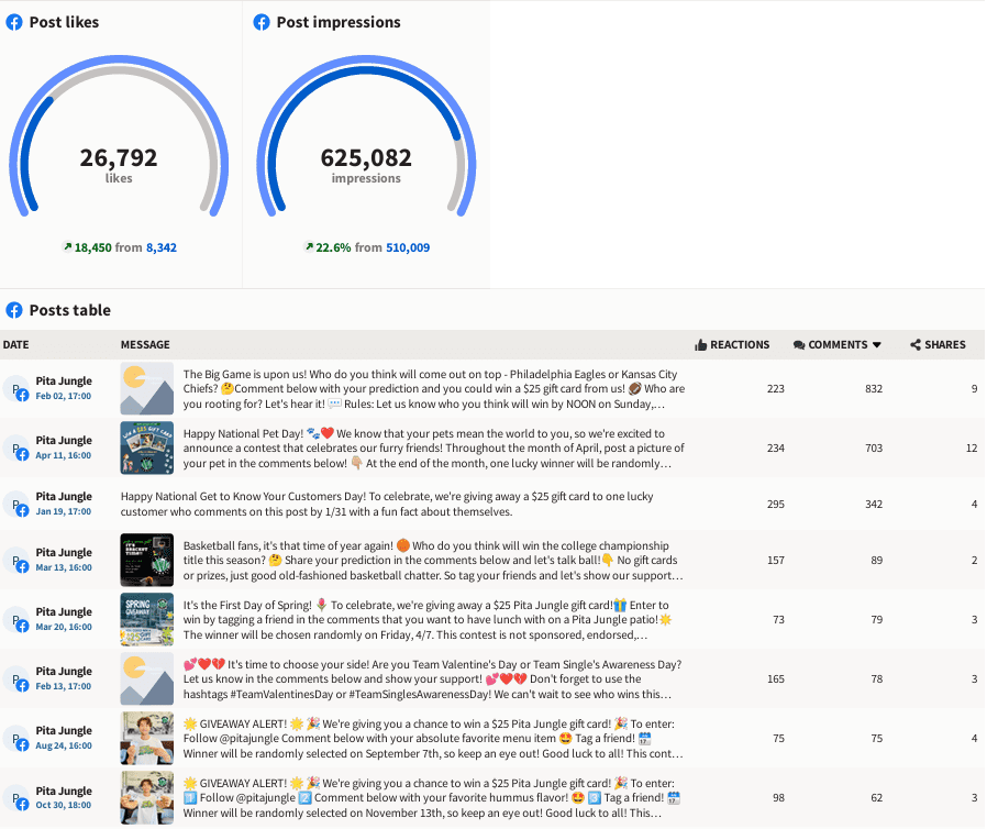 10% increase in social media impressions for Pita Jungle in 2023.