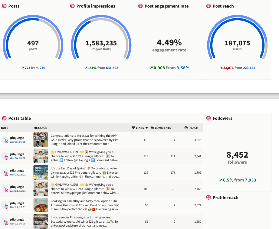 Case Study: Pita Jungle Achieves +151% Organic Social Media Impressions